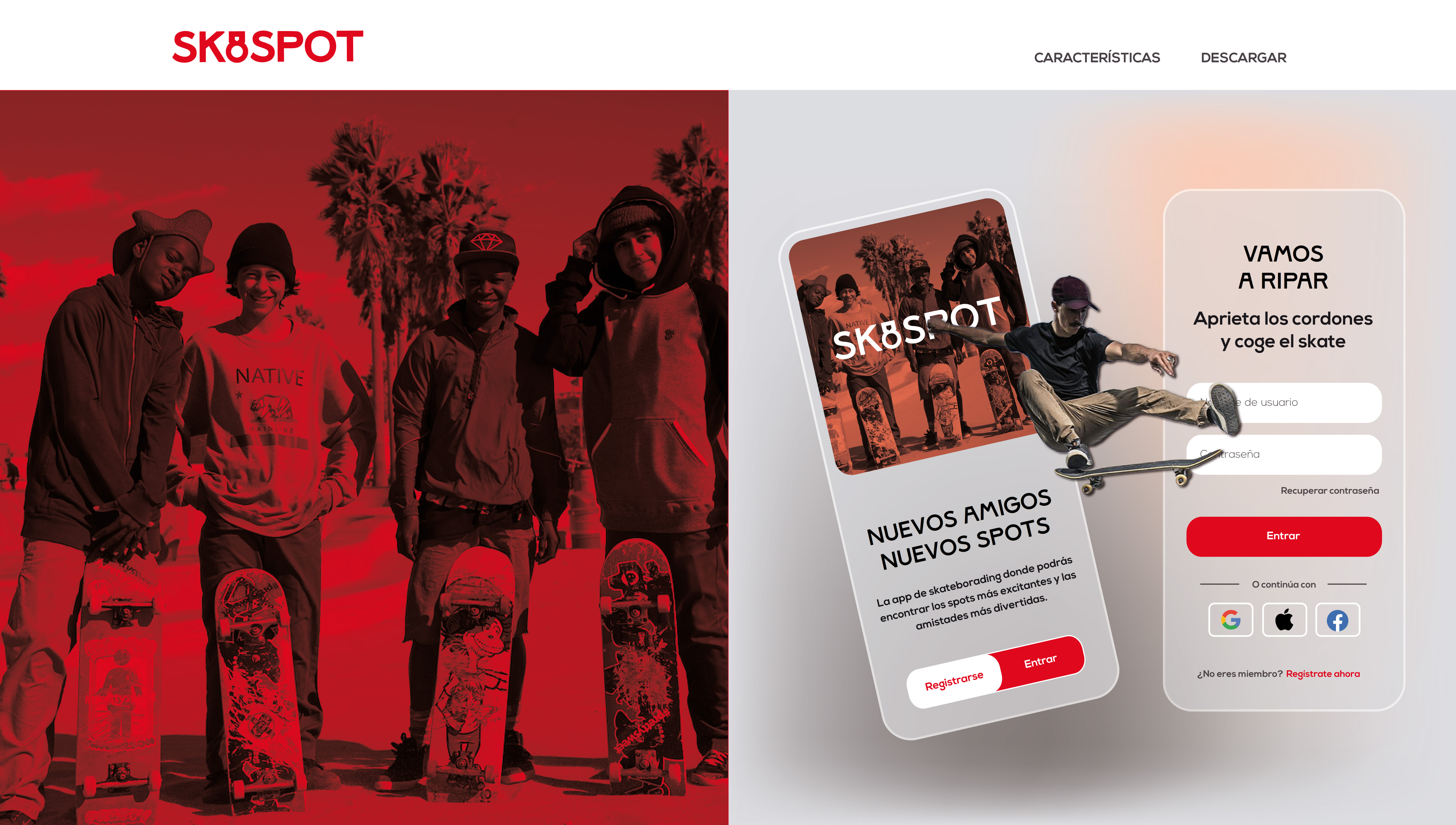 Diseño de app de skate. Se trata de una red social para encontrar gente y nuevos sitios donde patinar.